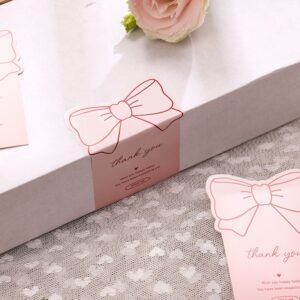 The delicate pink bow and crisp white background blend elegance with playfulness. Use these cards for custom thank-you packaging, bridal shower essentials, or bow-themed events—guaranteed to impress clients, guests, or social media audiences.